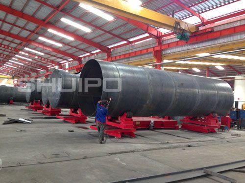 自調(diào)式異形筒體滾輪架是一種適用于焊接管道、容器、油罐等圓筒形 矩形工件的專用焊接輔助機(jī)械,廣泛應(yīng)用在制管業(yè)、壓力容器制造業(yè)、金屬結(jié)構(gòu)焊接加工業(yè)、重型機(jī)械制造業(yè)等的現(xiàn)代加工行業(yè)中。我公司滾輪架的滾輪旋轉(zhuǎn)采用交流電機(jī)驅(qū)動(dòng)、變頻調(diào)速,具有調(diào)速范圍寬,轉(zhuǎn)動(dòng)平穩(wěn)性好,低速特性硬等特點(diǎn)。與操作機(jī)、焊接變位機(jī)、埋弧焊機(jī)等設(shè)備配合使用,可對(duì)工件進(jìn)行環(huán)縫焊接及縱縫焊接,可提高焊接生產(chǎn)速度并使焊接質(zhì)量保持穩(wěn)定,顯著減少了焊接輔助時(shí)間、降低了工人的勞動(dòng)強(qiáng)度、改善工作環(huán)境、提高生產(chǎn)率。