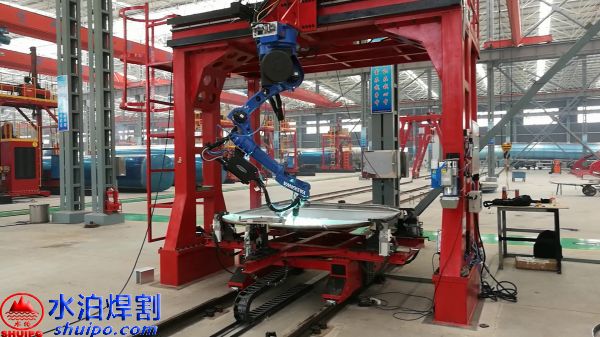 加強(qiáng)筋焊接機(jī)器人用于罐體封頭、隔板等加強(qiáng)筋的自動激光掃描、搬運(yùn)、切割、焊接自動工序,采用PLC可編程控制器自動控制技術(shù)、圖形軌跡采集系統(tǒng)、工業(yè)計(jì)算機(jī)控制等技術(shù),配備了圖形軌跡運(yùn)動控制系統(tǒng),使加強(qiáng)筋與封頭的連接處緊密結(jié)合,外形美觀,質(zhì)量可靠、生產(chǎn)效率高、操作簡單方便等優(yōu)點(diǎn),不僅可提高工作效率,改善操作環(huán)境,而且能提高罐體封頭的自動化程度,可保證批量生產(chǎn)過程中可靠穩(wěn)定的廂板成形質(zhì)量,大大提升改裝汽車產(chǎn)業(yè)和壓力容器的產(chǎn)品檔次。而且它制作的加強(qiáng)筋成形外觀更加圓滑美觀,成形應(yīng)力更小、使用壽命更長。它比手工測量、計(jì)算、劃線、裁剪、對中、矯正、焊接,工作效率更高、并可節(jié)省大量人力資源。